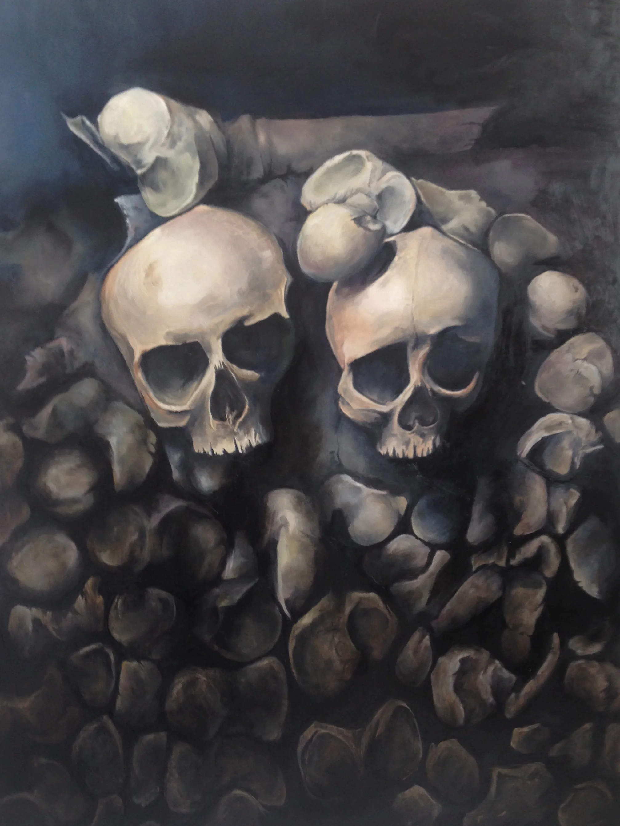 It is perhaps not surprising that the darker the subject matter, the more questions people have about a painting. And so I am going to take a moment and go behind the scenes of one of my more morbid pieces, dually inspire by the First Battle of Ypres and the Parisian Catacombs: Kindermord.